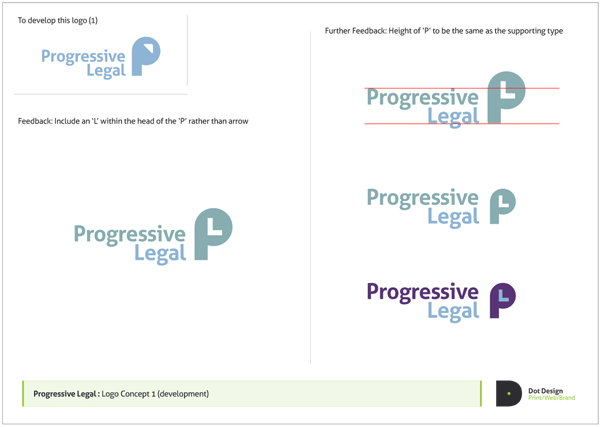 When Dot Design initially talked through the project brief it was clear that this was to be an evolution of the existing brand identity design. Progressive Legal wanted to retain certain graphic elements such as use of blues and exploration of the original ‘P’ arrow device as seen below. The client was also keen to use the sky imagery that had been put in place in previous material to build on it’s existing brand image rather than starting a fresh. You can see the literature design at the bottom of this post.