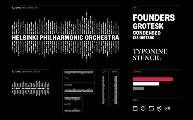 “Helsinki Philharmonic Orchestra wanted to reposition its brand in order to strengthen the brand image and overall experience. In a series of workshops the new positioning and identity was crystallised; the power and energy of the music is the orchestra’s driving force. The new visual identity brings alive Helsinki Philharmonic Orchestra’s core, all 102 musicians, in both logo and photographic concept.”