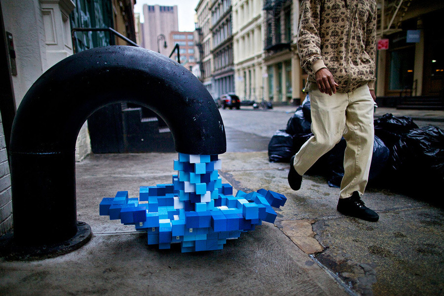 “Titled “Pixel Pour,” installed in April 2008 on 9th St. and 2nd Ave, gained overnight internet fame. To Kneeon’s surprise, the sculpture began showing up on blogs from NotCot to Gothamist to Boing Boing just days after installation.”