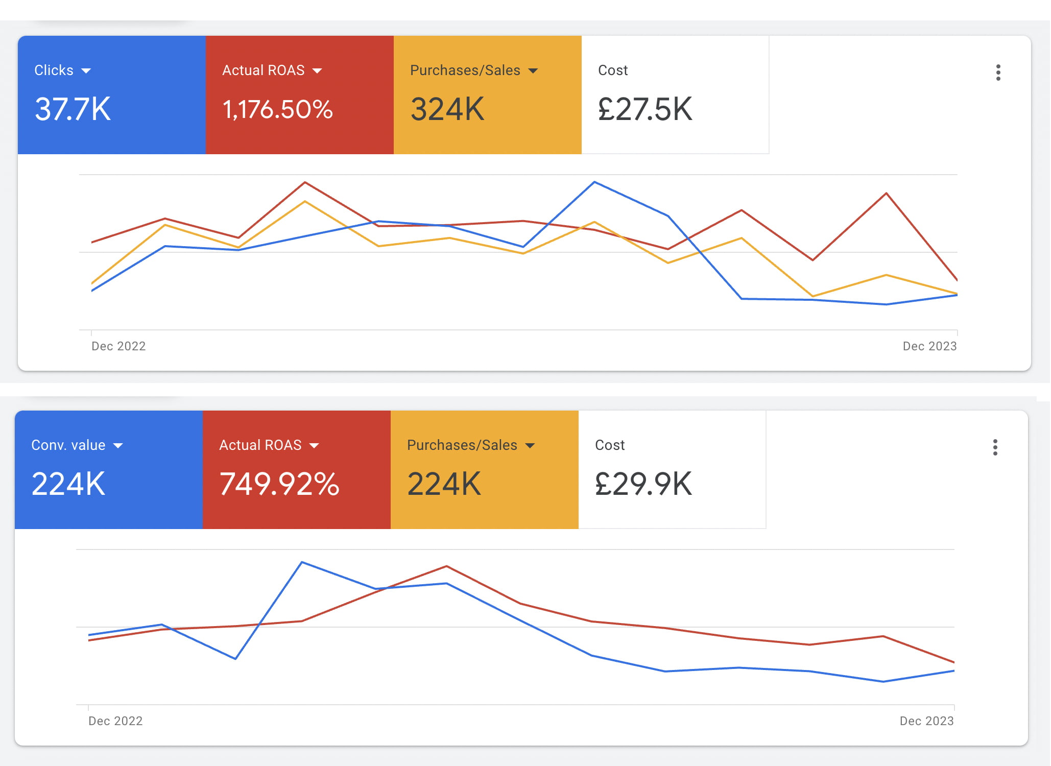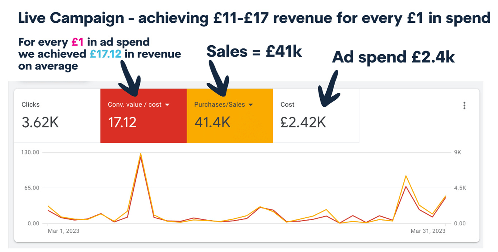 Google says that PPC delivers an average of £2 in revenue for every £1 they spent on Google Ads. We think that’s conservative. For two of our ecommerce clients we’ve managed between a £6 in revenue for every £1 spend and sometimes as high as £11-£17 in revenue per £1 spent. So yes, we believe it is worth it. Screenshots below.