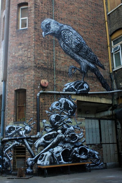 A fantastic example of street art at it’s best by ROA and Phlegm in Peckham. The level of detail and depth created is very expressive. See more detailed images and extra artwork over at streetartlondon.co.uk