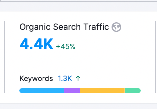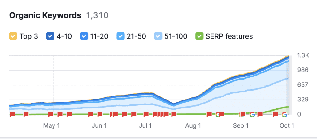 From 69 organic keywords indexed to per month to over 1300 organic keywords.