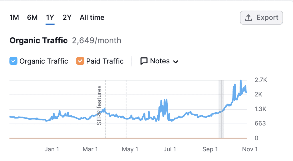 From 800 organic keywords indexed to per month to over 2700 organic keywords.