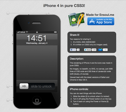 Virtual iPhone – iPhone 4 in pure CSS3